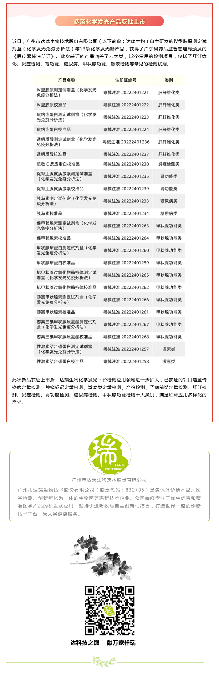 喜訊 | 達(dá)瑞生物八項(xiàng)化學(xué)發(fā)光產(chǎn)品獲批