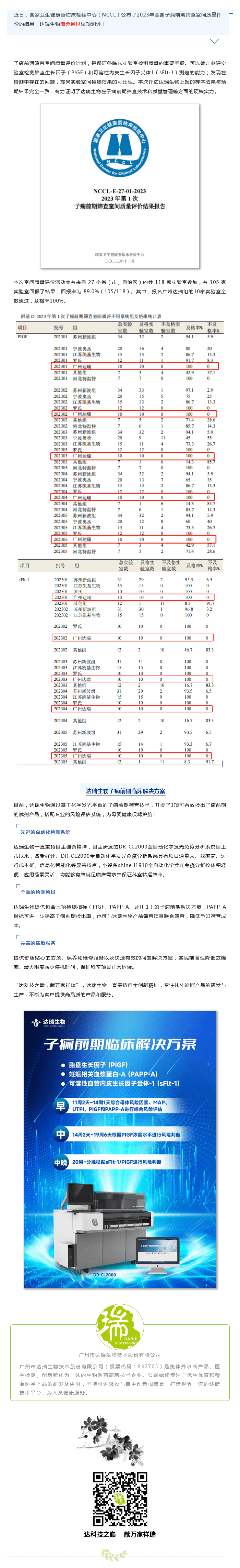 滿分!達(dá)瑞生物通過2023年全國子癇前期篩查室間質(zhì)評(píng)